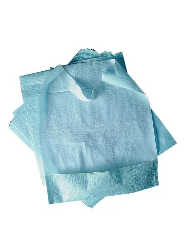 Babero de Omnia color azul es una protección para el paciente indicada para recoger líquidos durante las sesiones de limpieza gracias a su bolsillo inferior.