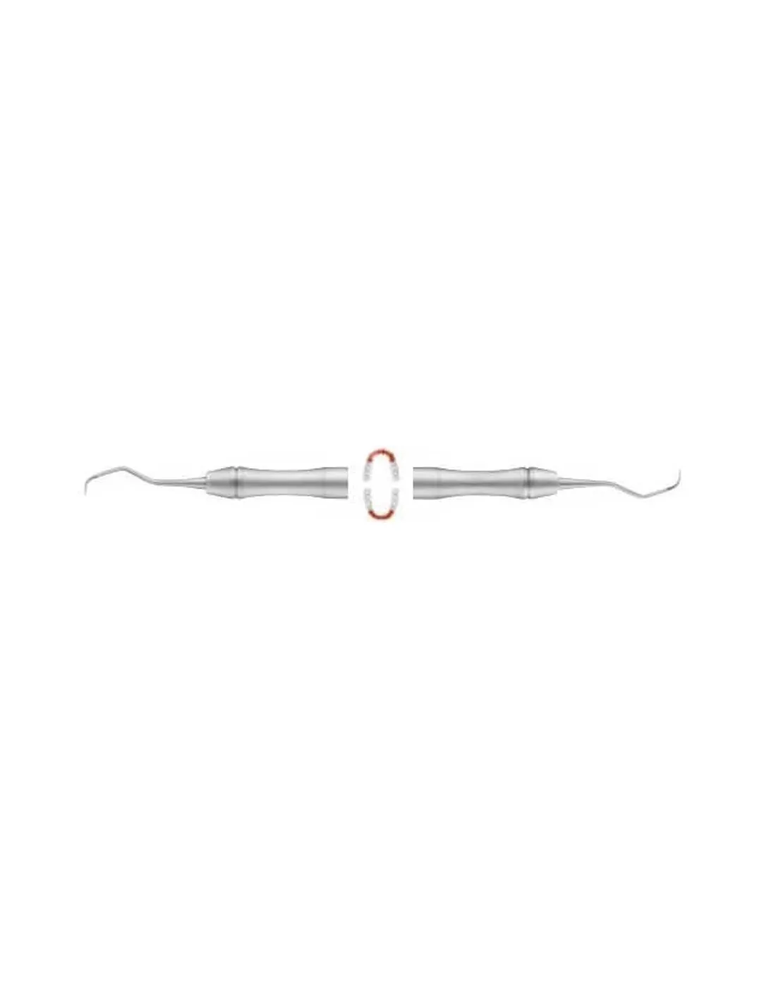 La cureta Gracey 3-4 Liquidsteel de Carl Martin, LS972/3-4, es un instrumento dental acodado con doble parte activa, que se utilizan para retirar el sarro de las caras dentales.