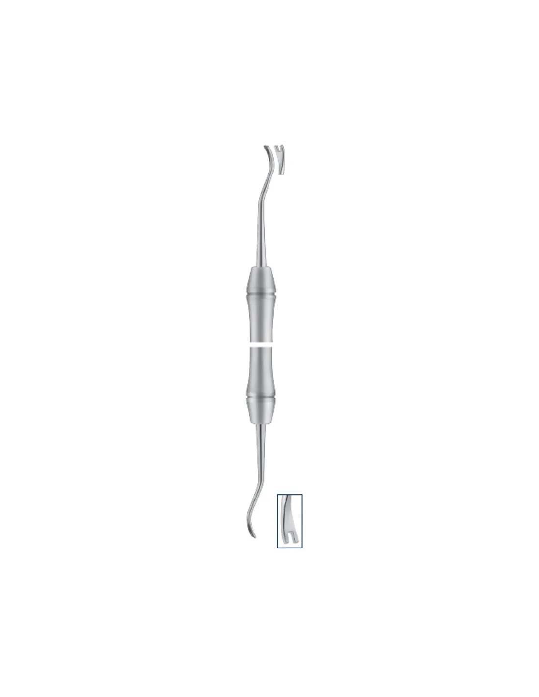 Posee doble parte activa angulada facilitar el acceso y la guía.