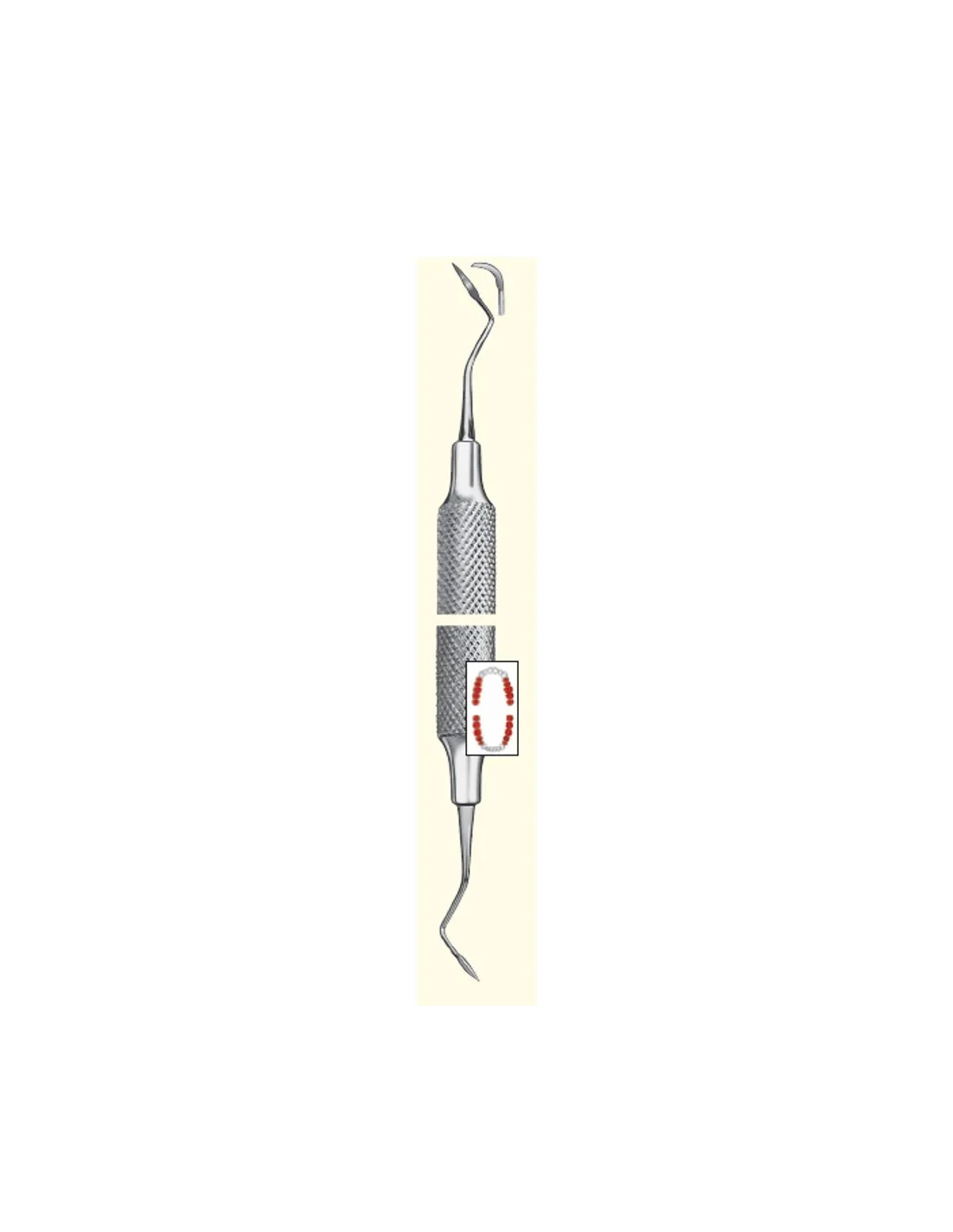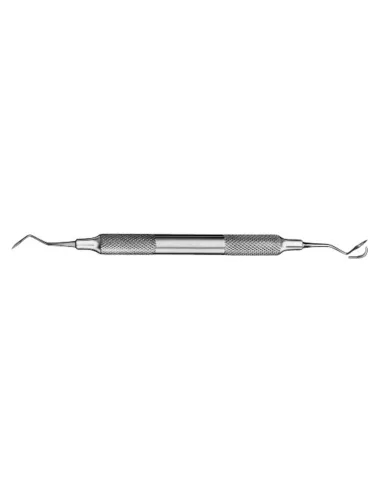 Es un raspador con doble angulación de puntas precisas y afiladas.