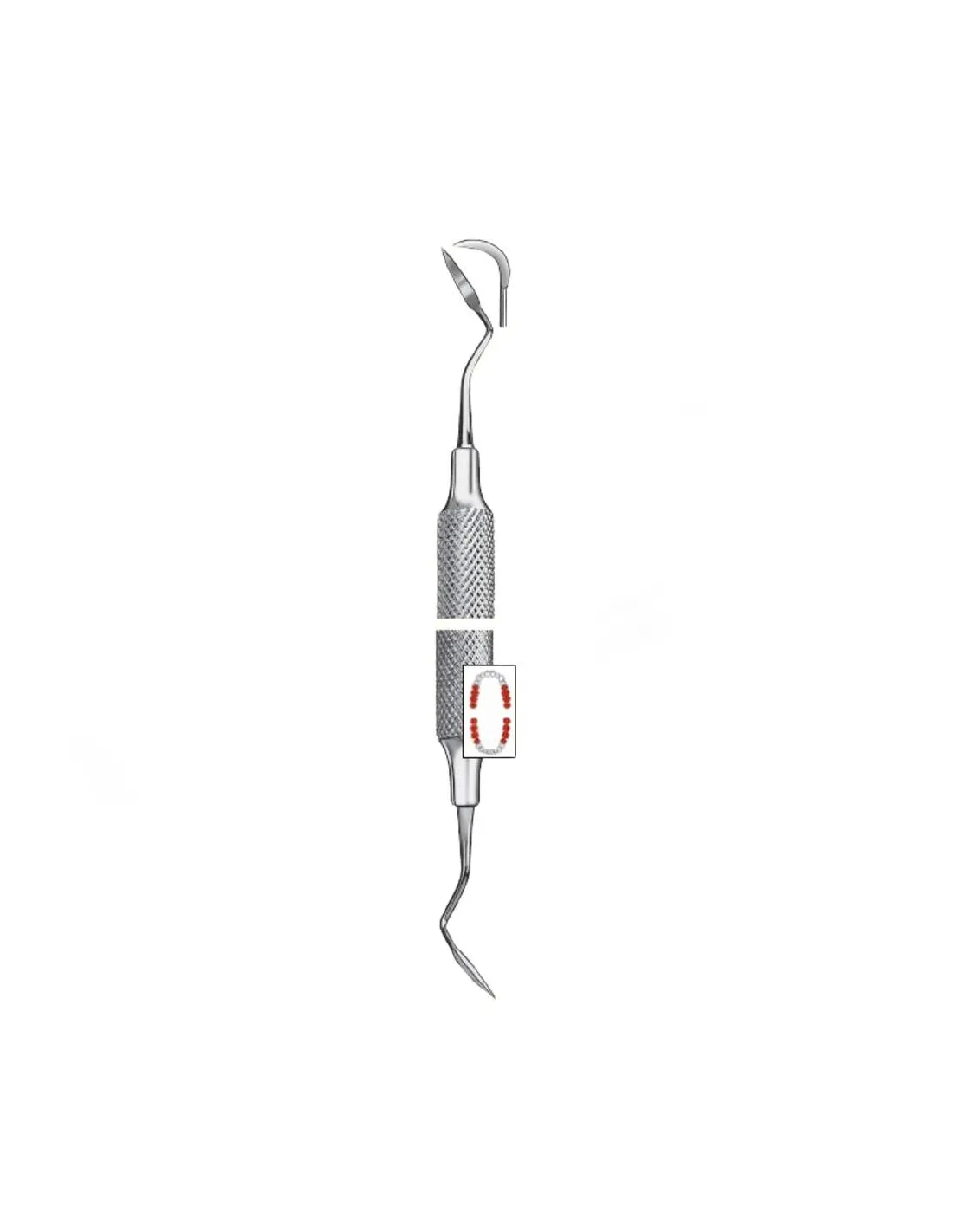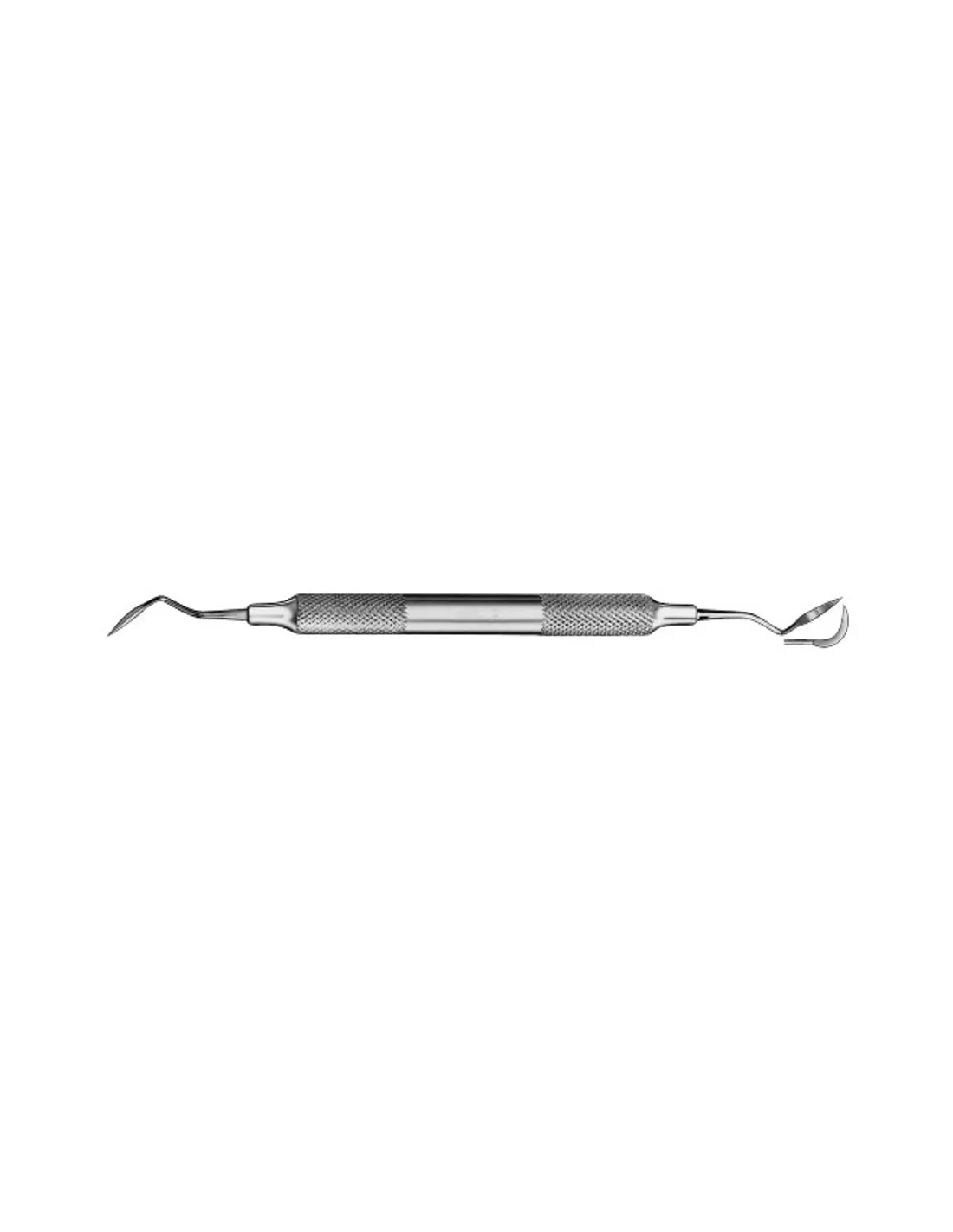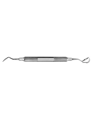 Es un raspador con doble parte activa de puntas precisas y afiladas.