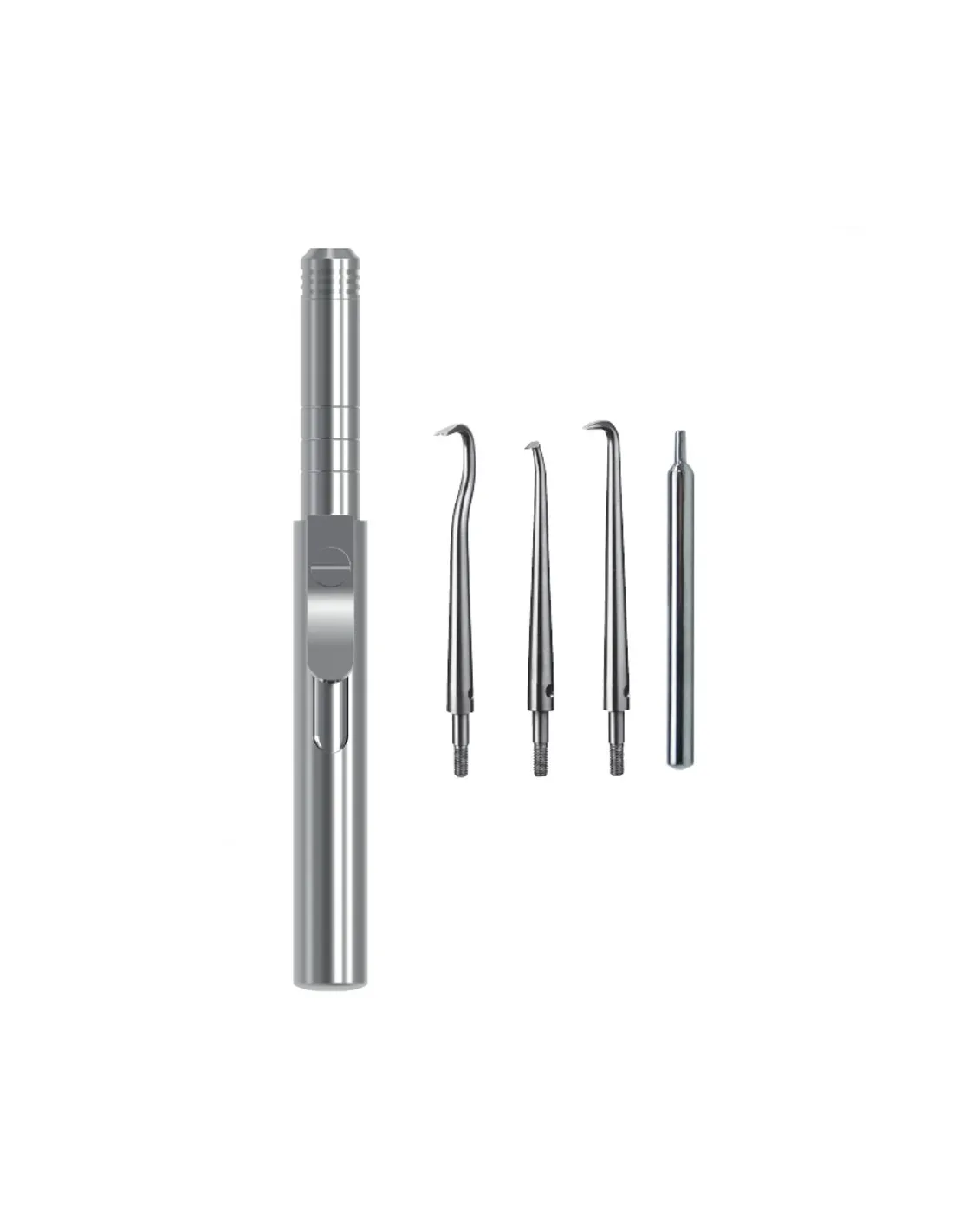 El extractor de coronas Autorem 1105 de Carl Martin incluye 3 ganchos extractores desmontables e intercambiables de distinta forma y 1 llave de montaje.