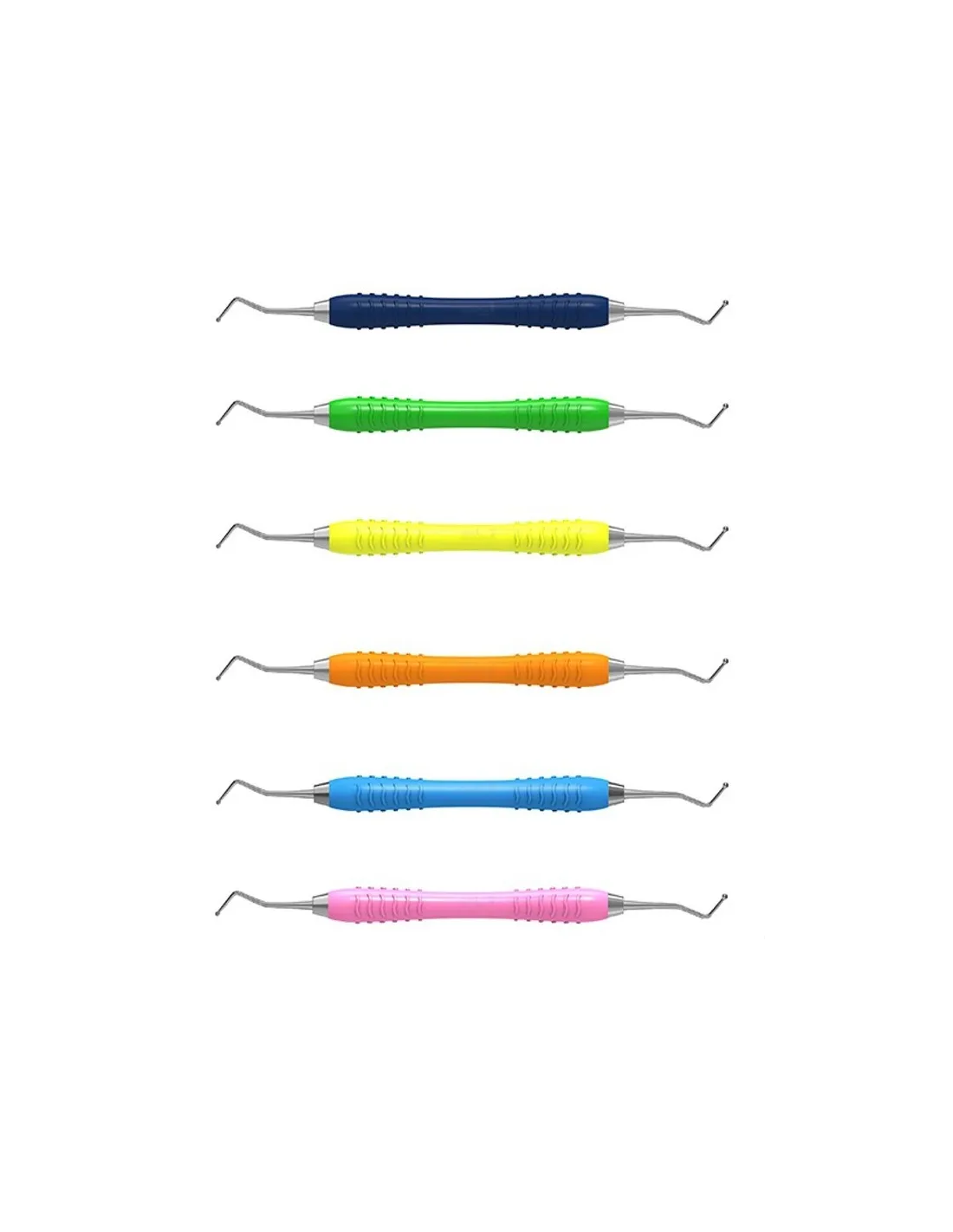 Los mangos se presentan codificados por color para permitir una fácil identificación entre los instrumentos.