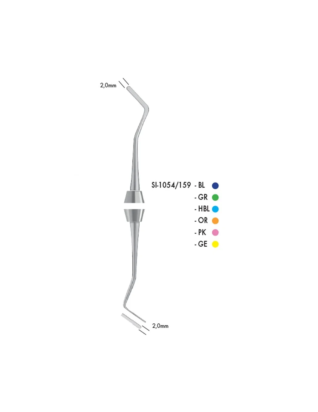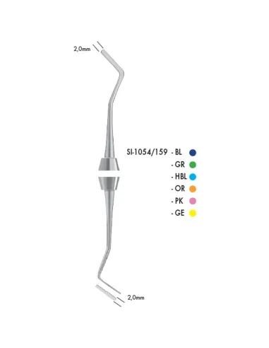 - Doble parte activa, espátula, 2.0 mm y 2.0 mm.