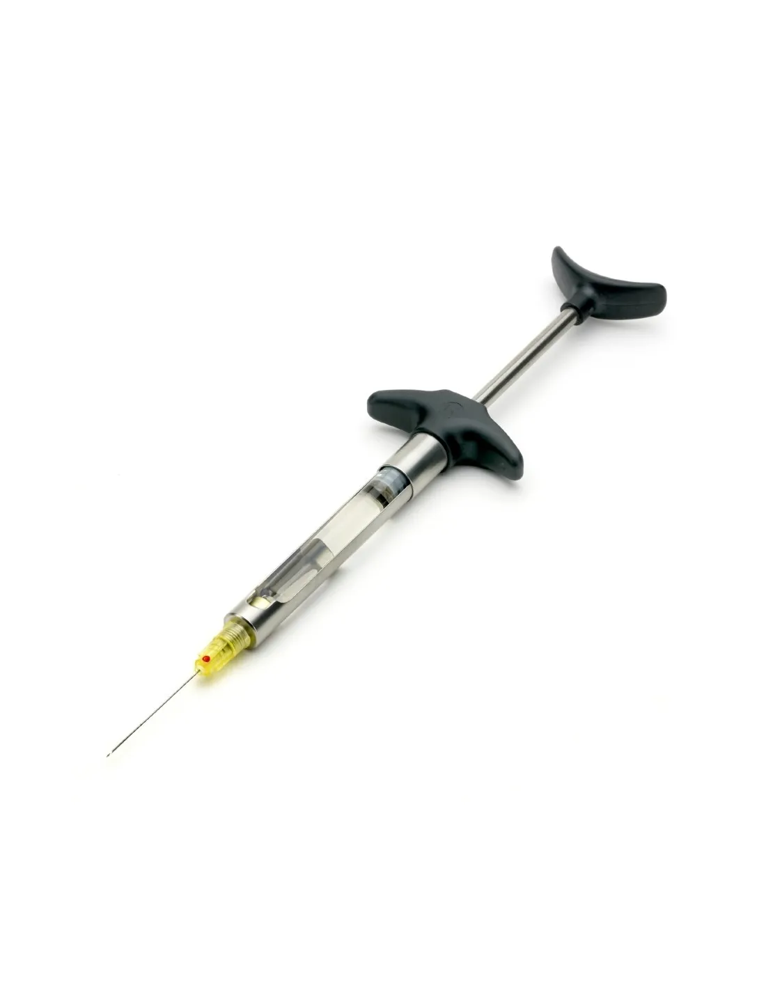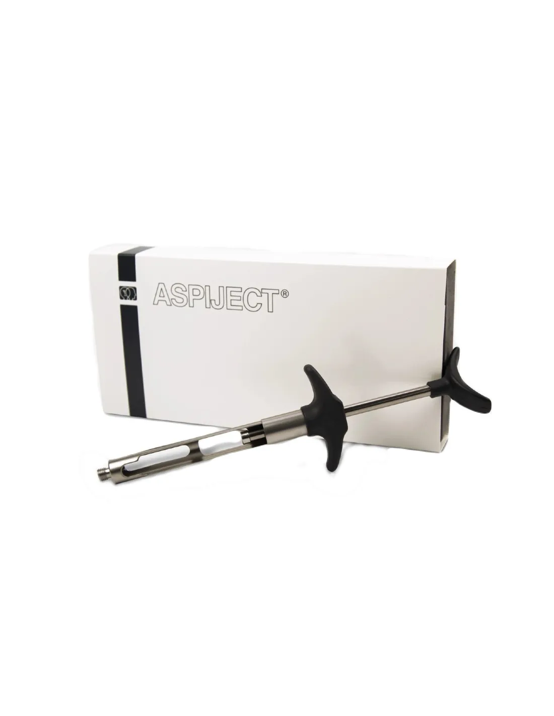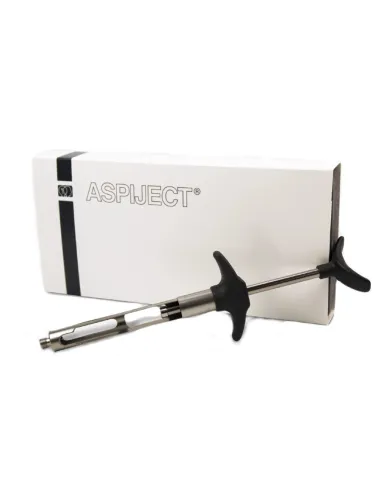 La jeringa para anestesiar Aspiject de Inibsa está fabricada en acero inoxidable y polimeros resistentes al calor.