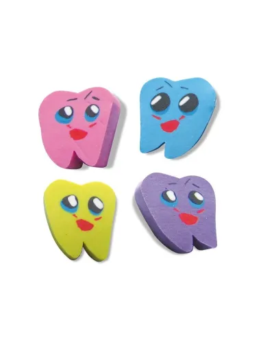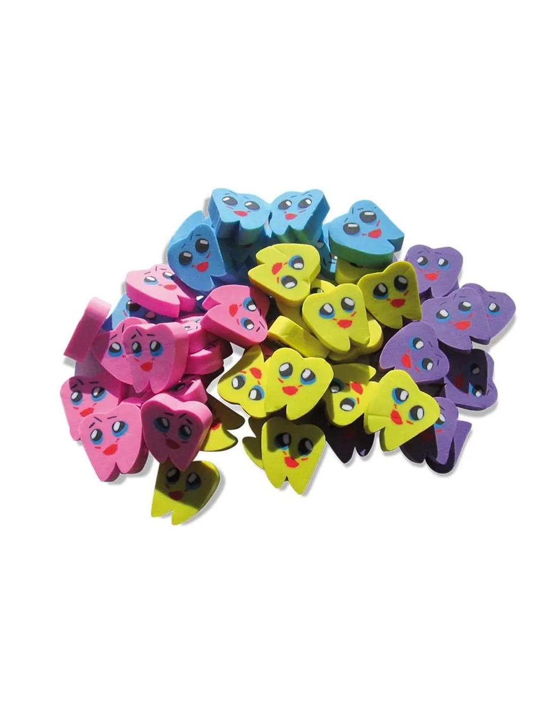 Las gomas de borrar de Kike Toys poseen forma de muelas con caritas en atractivos colores.