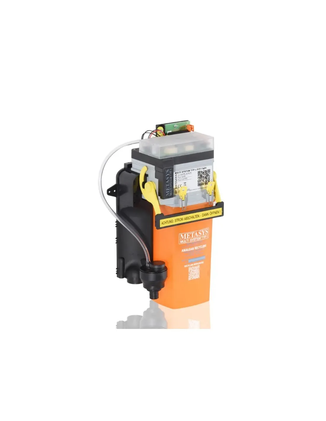 La centrifugadora sin separación de amalgama Metasys MST 1 ECO LIGHT es un módulo de separación del agua y del aire que no precisa de instalaciones adicionales ya que cuenta con su propia válvula de selección de lugar.