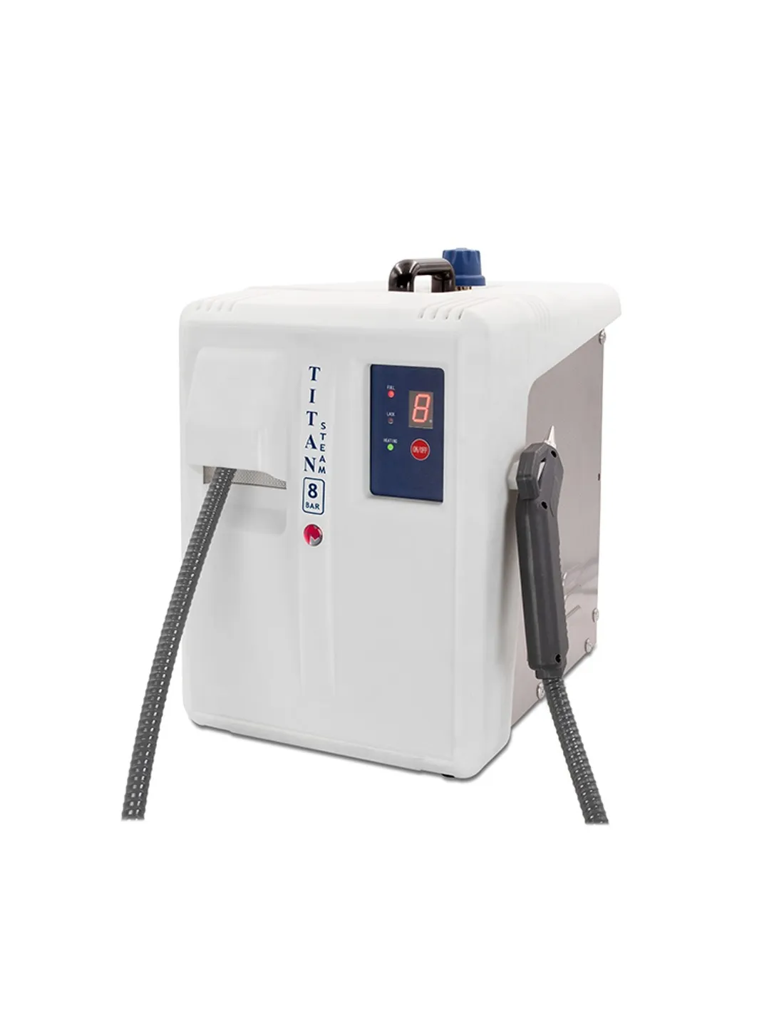 La máquina de vapor Titan 8 de Mestra es capaz de suministrar un chorro continuo de vapor totalmente seco.