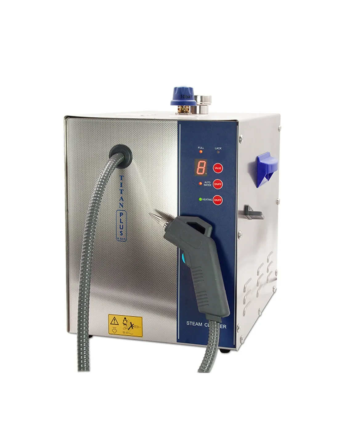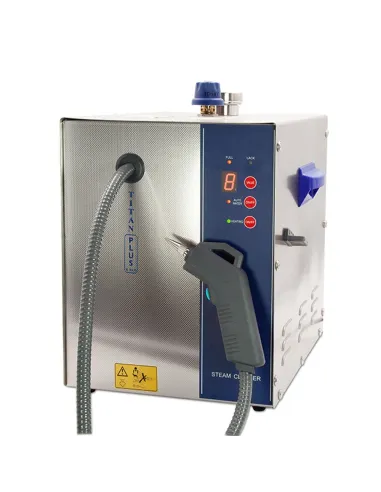 De tamaño compacto, la máquina de vapor Titan Plus está fabricada en acero inoxidable con componentes de alta calidad.