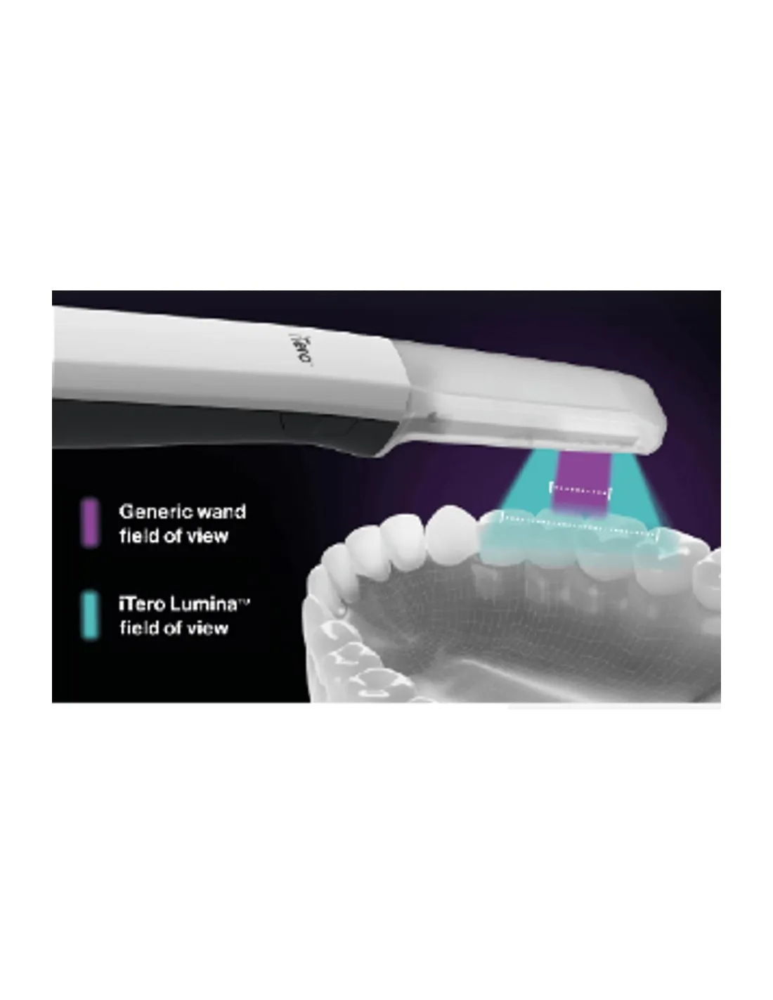 iTero Lumina cuenta con un campo de visión más amplio y una pieza de mano un 50% más pequeña y más ligera, lo que facilita considerablemente un escaneo más rápido, con mayor precisión y comodidad, además de permitir una mejor visibilidad.
