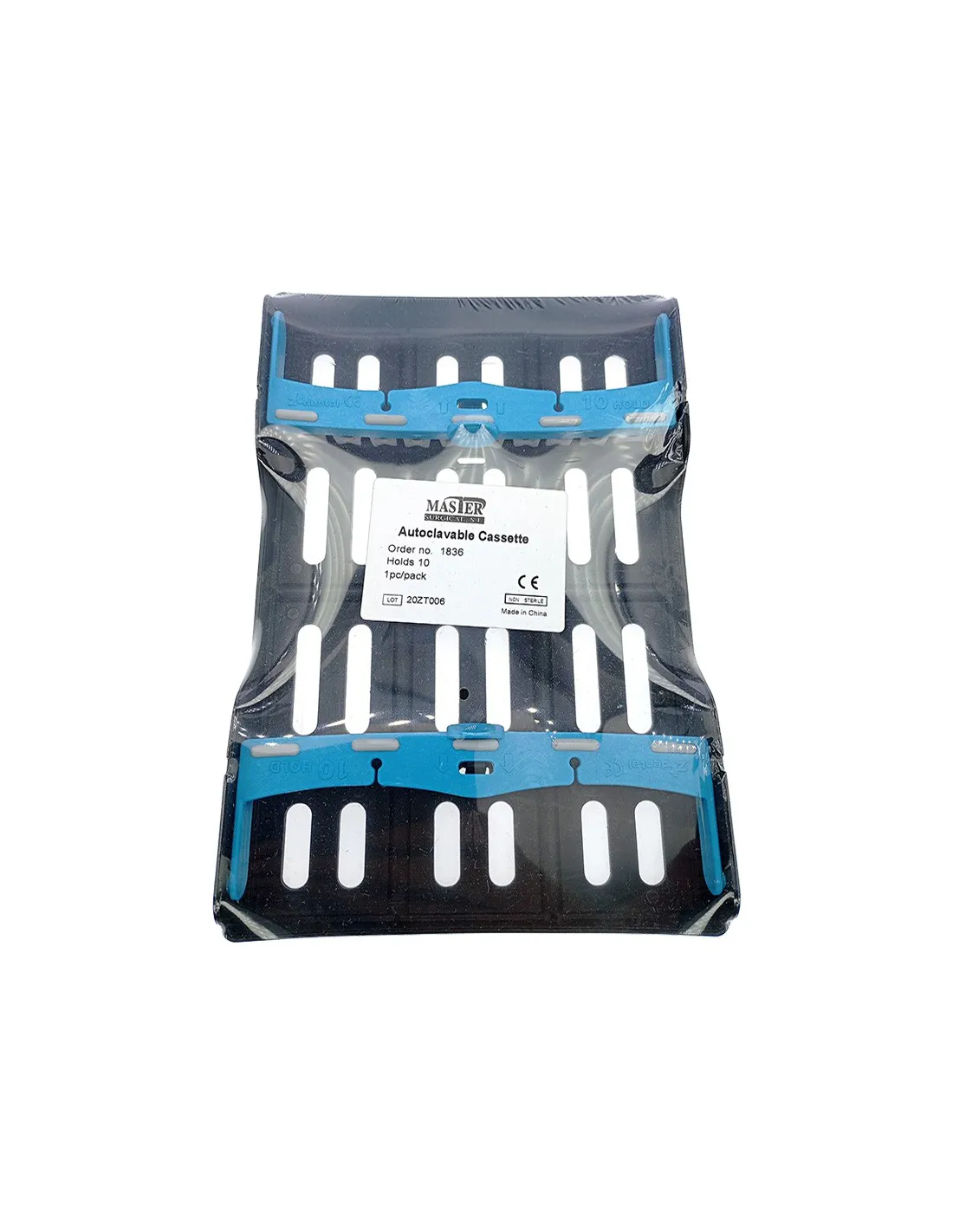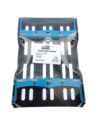 Fabricada en acero inoxidable, la bandeja de esterilización de Masters presenta una capacidad para 10 piezas y contiene separadores de silicona en su interior para una óptima sujeción.