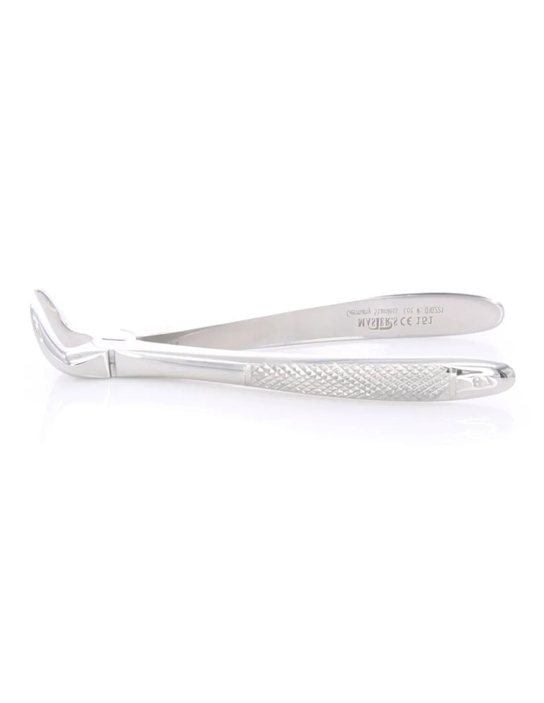 El fórceps para cariados y coronas rotas de Masters está fabricado en acero inoxidable alemán.