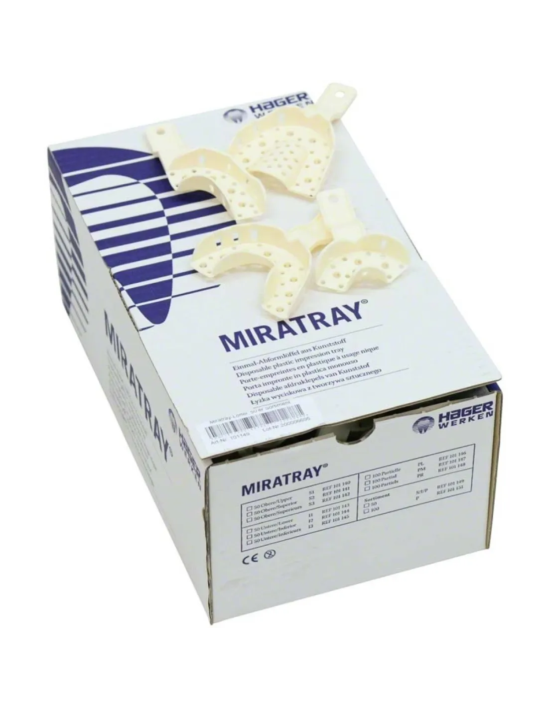 Miratray de Hager Werken son cubetas para impresión dental fabricadas en plástico blanco rígido, no se astilla, que se puede marcar con rotulador.