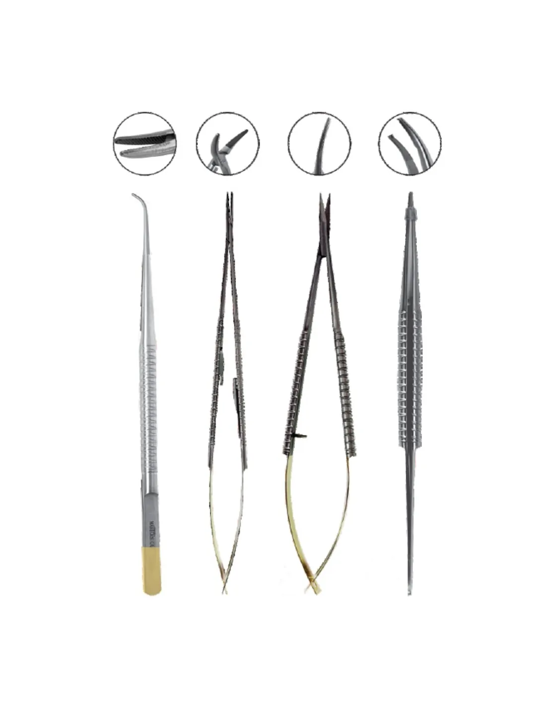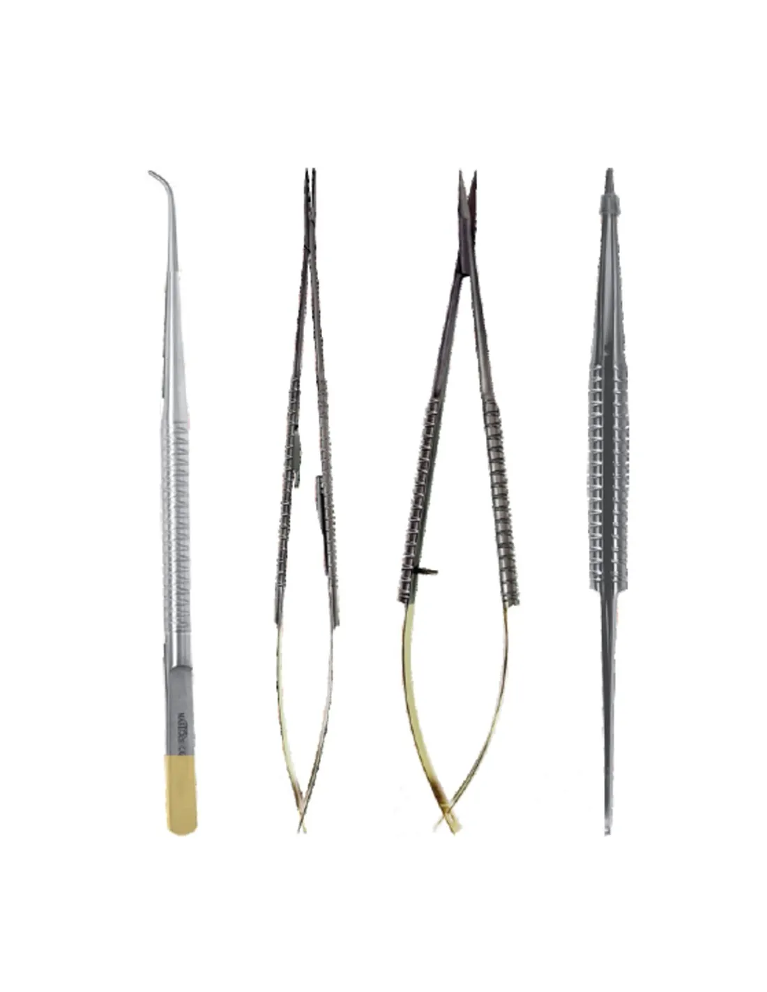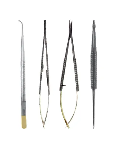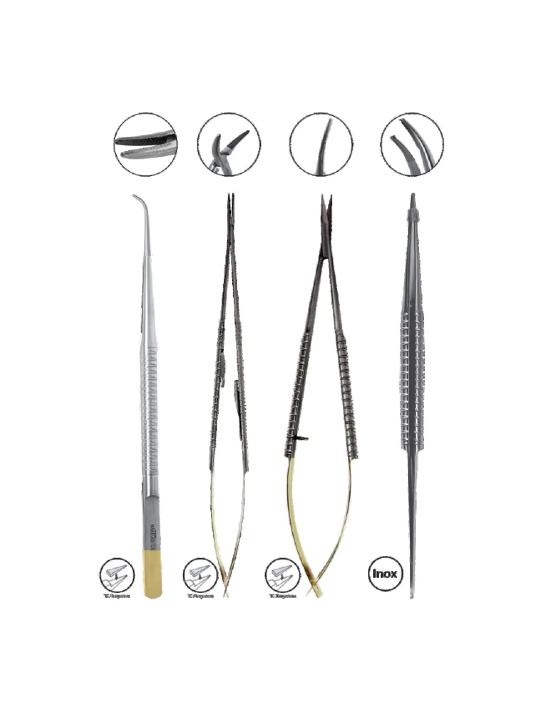 KIT INSTRUMENTAL PARA MICROCIRUGIA TC / INOX 4 PIEZAS PUNTAS CURVAS