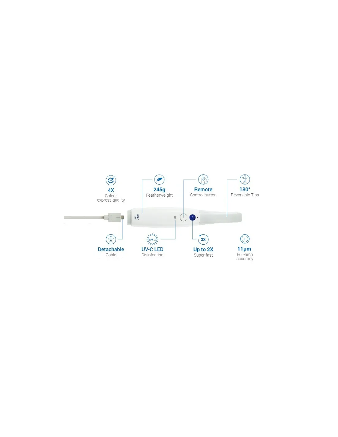 Medit i700 conserva todas las características del Medit i500 como realizar escaneos rápidos basados en vídeo, capturando más datos en un menor período de tiempo y dando como resultado una imagen más suave y más detallada. Además, captura a todo color en 3D para escaneados precisos y con el máximo nivel de detalle.