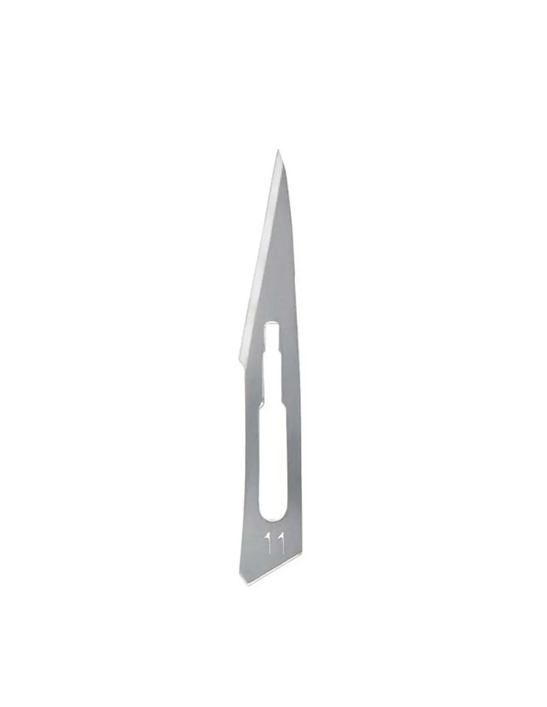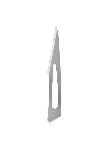 La hoja de bisturí 11 de Carl Martin es un instrumento metálico de filo cortante.