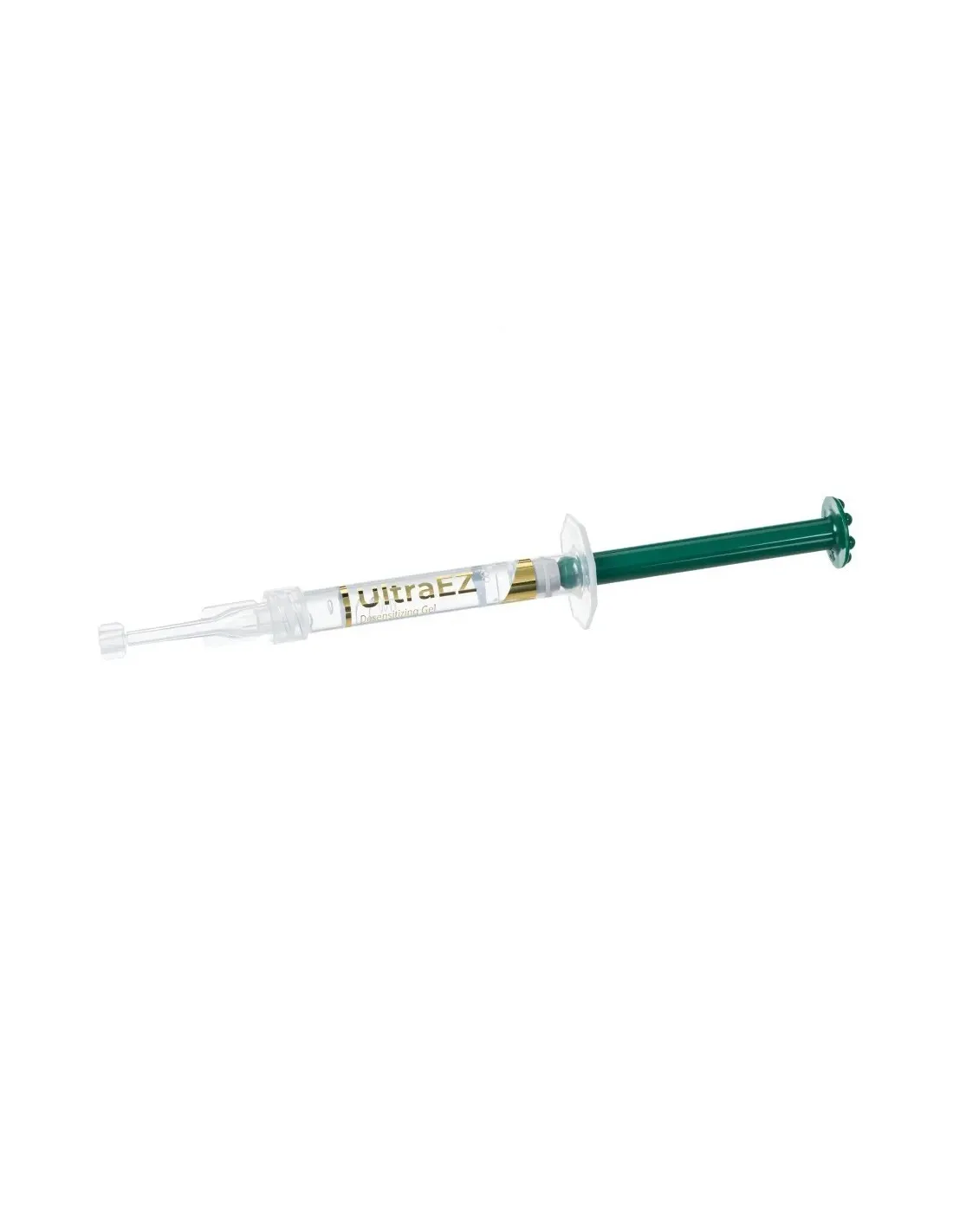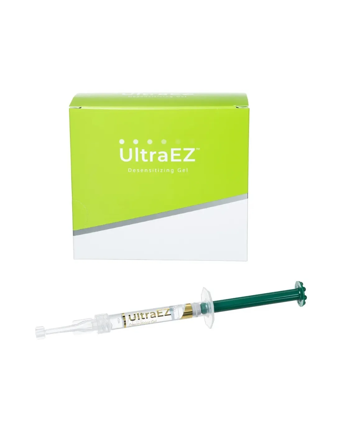 UltraEZ de Ultradent es un gel desensibilizante único, adhesivo, viscoso, de liberación sostenida, con nitrato de potasio al 3 % y con ion fluoruro al 0.11 % en peso por peso.