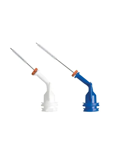 Disponible en longitudes de cánula, codificadas por color: 17 mm (blanco) y 25 mm (azul).