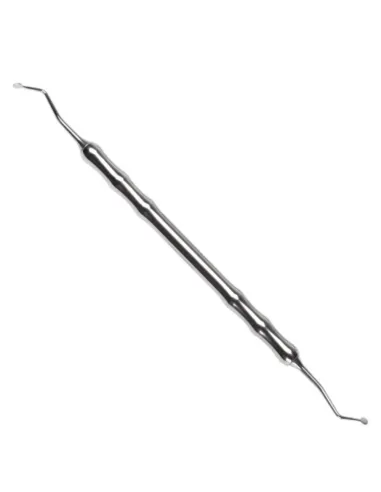 Este empacador de hilo cuenta con bordes finos y dentados presionan el hilo, evitando que se deslice y reduciendo el riesgo de cortar el atache gingival.