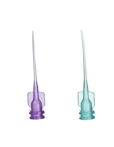 Disponibles en dos longitudes de puntas con diámetros de abertura diferentes, codificados por color.