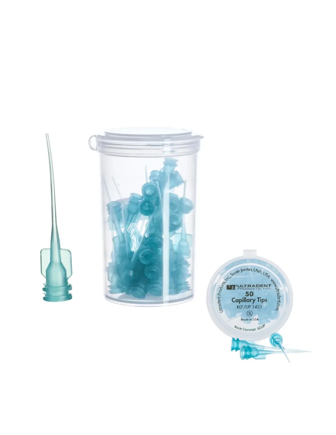 Capillary Tip de Ultradent son puntas de aspiración ultrafinas de polipropileno que se utilizan en combinación con el adaptador Luer para aspirar fluidos fuera del conducto radicular. Con su uso se minimiza notablemente el uso de puntos de papel.