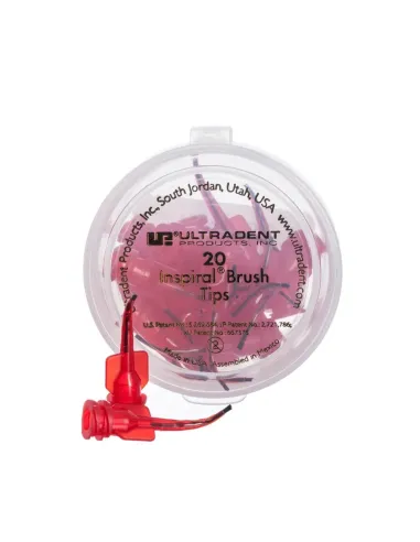 Las puntas Inspiral Brush Tips de Ultradent son unas cánulas para aplicar materiales viscosos o rellenos sin problemas a través de un canal helicoidal interno y una cresta.