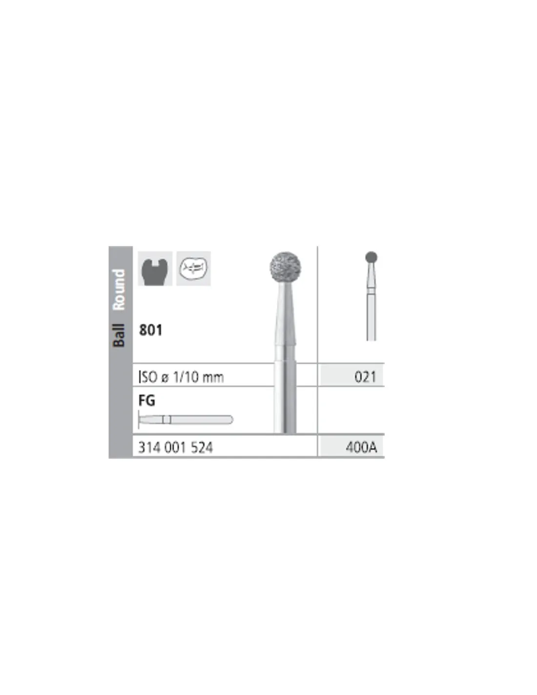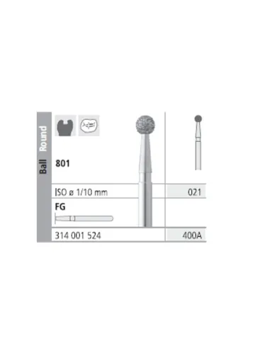 La fresa 801-021 con forma de bola, es una fresa diamante con grano medio.