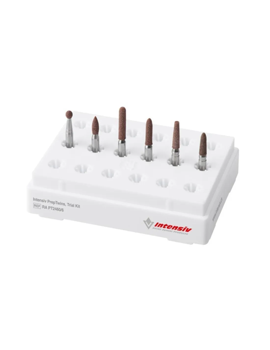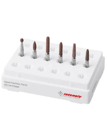 Las fresas contraángulo Prep Twins de Intensiv son fresas de acabado de polímero de diamante para dar forma refinada, pulir y contornear, a todas las preparaciones. a todas las preparaciones.