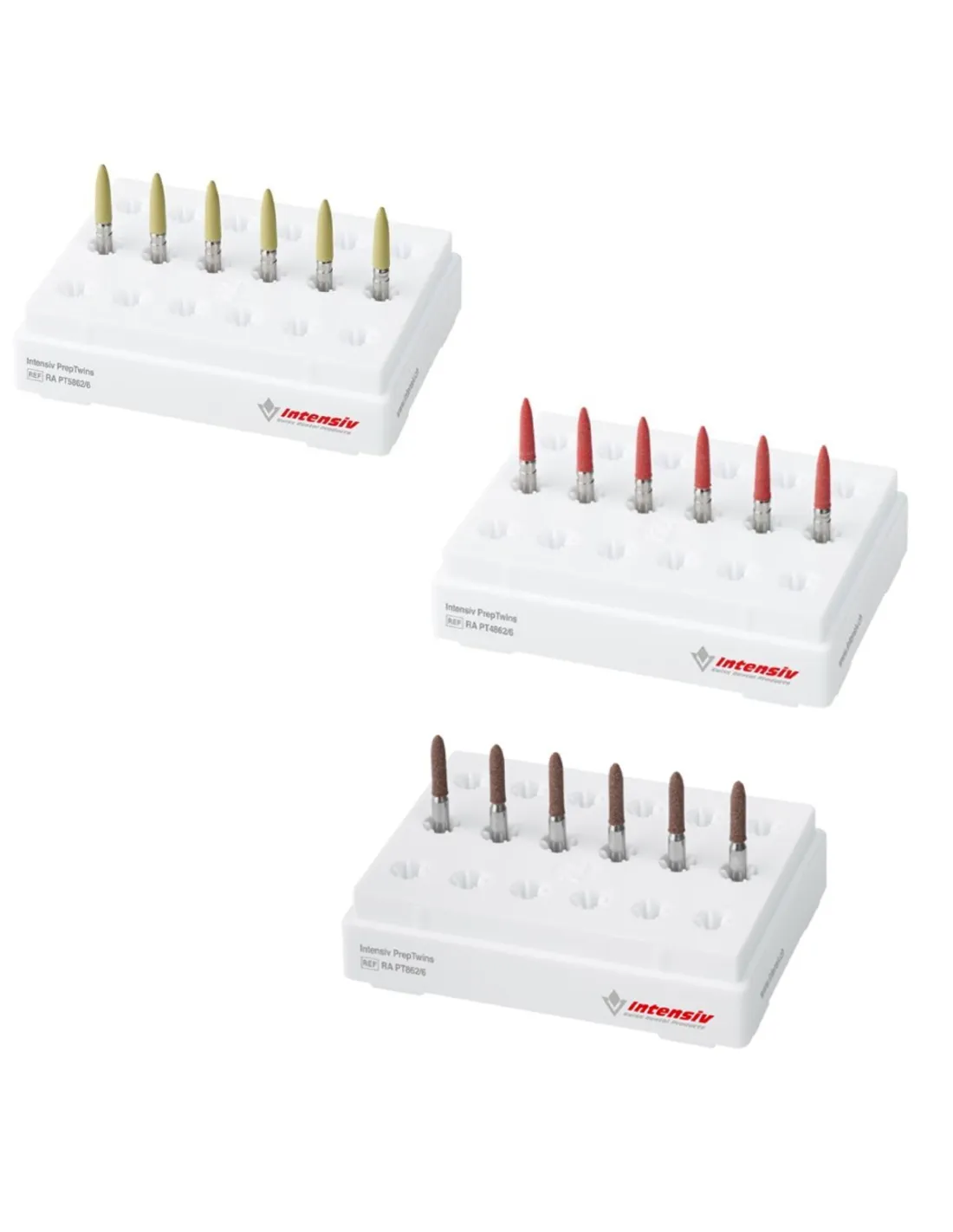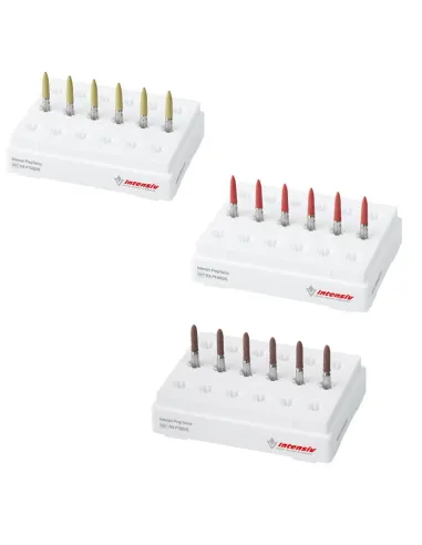Las fresas contraángulo Prep Twins de Intensiv son fresas de acabado de polímero de diamante para dar forma refinada, pulir y contornear, a todas las preparaciones. a todas las preparaciones.