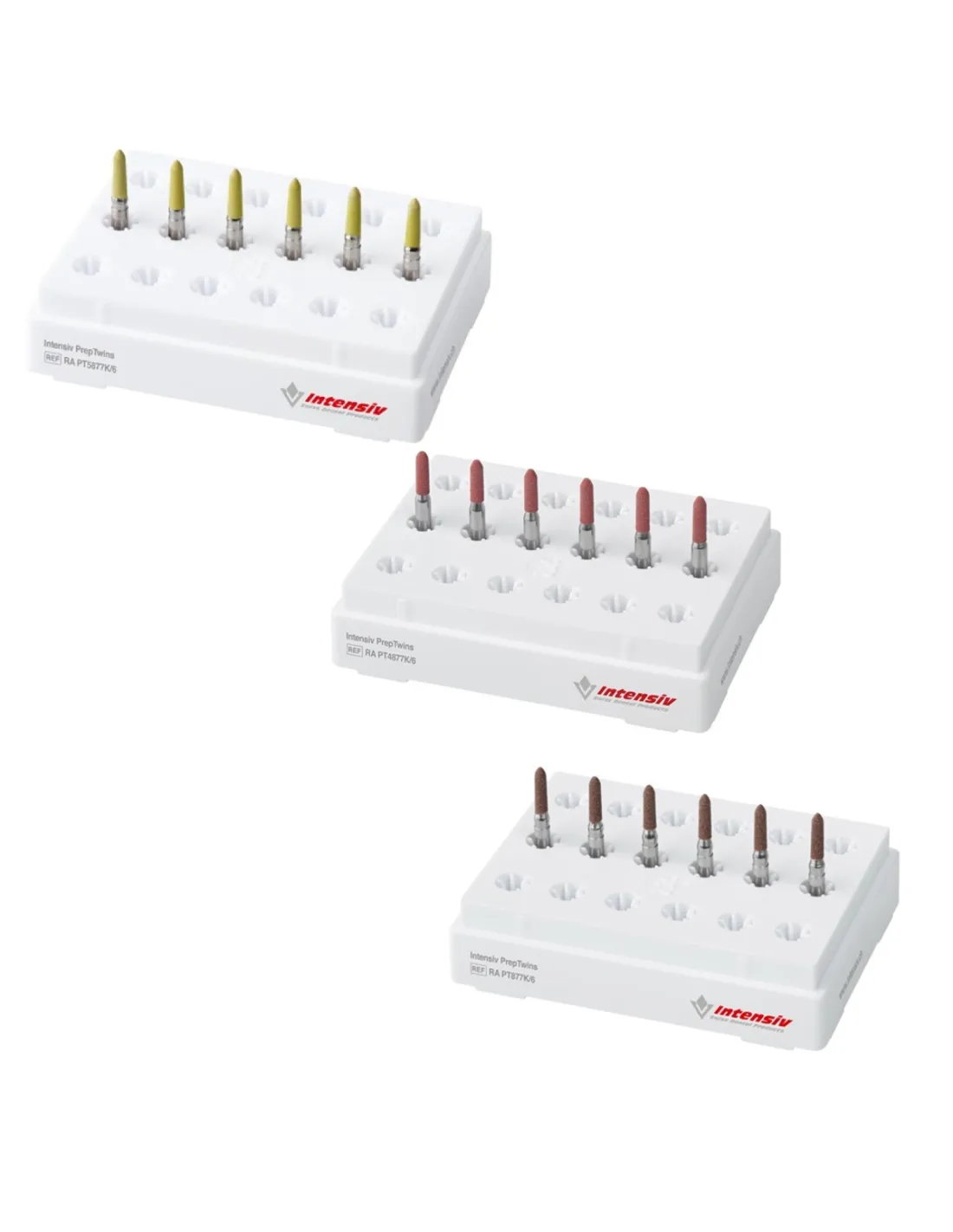 Las fresas contraángulo Prep Twins de Intensiv son fresas de acabado de polímero de diamante para dar forma refinada, pulir y contornear, a todas las preparaciones. a todas las preparaciones.