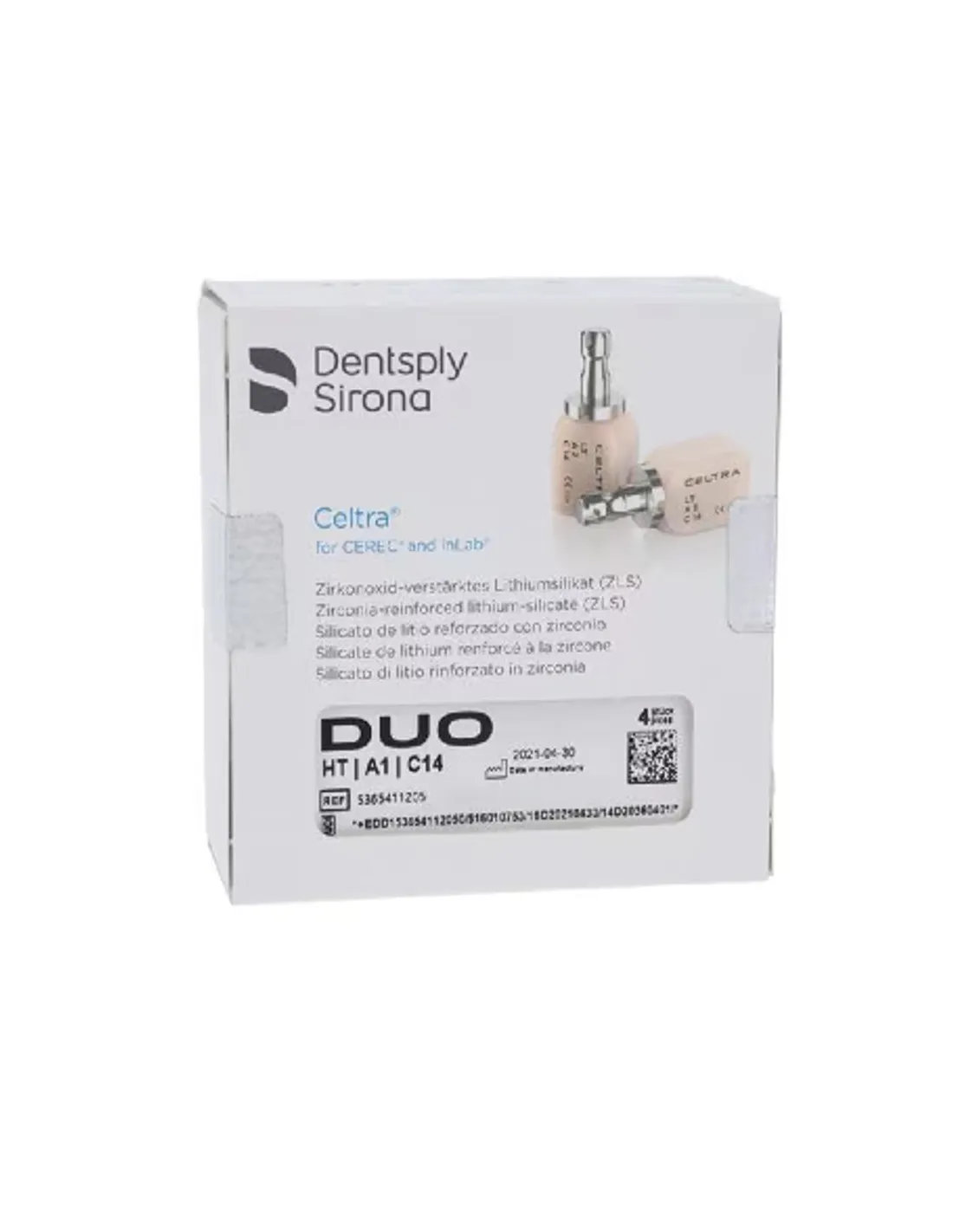 La caja de Celtra Duo de De Trey contiene: 4 bloques tamaño C14 de alta translucidez HT color A1.