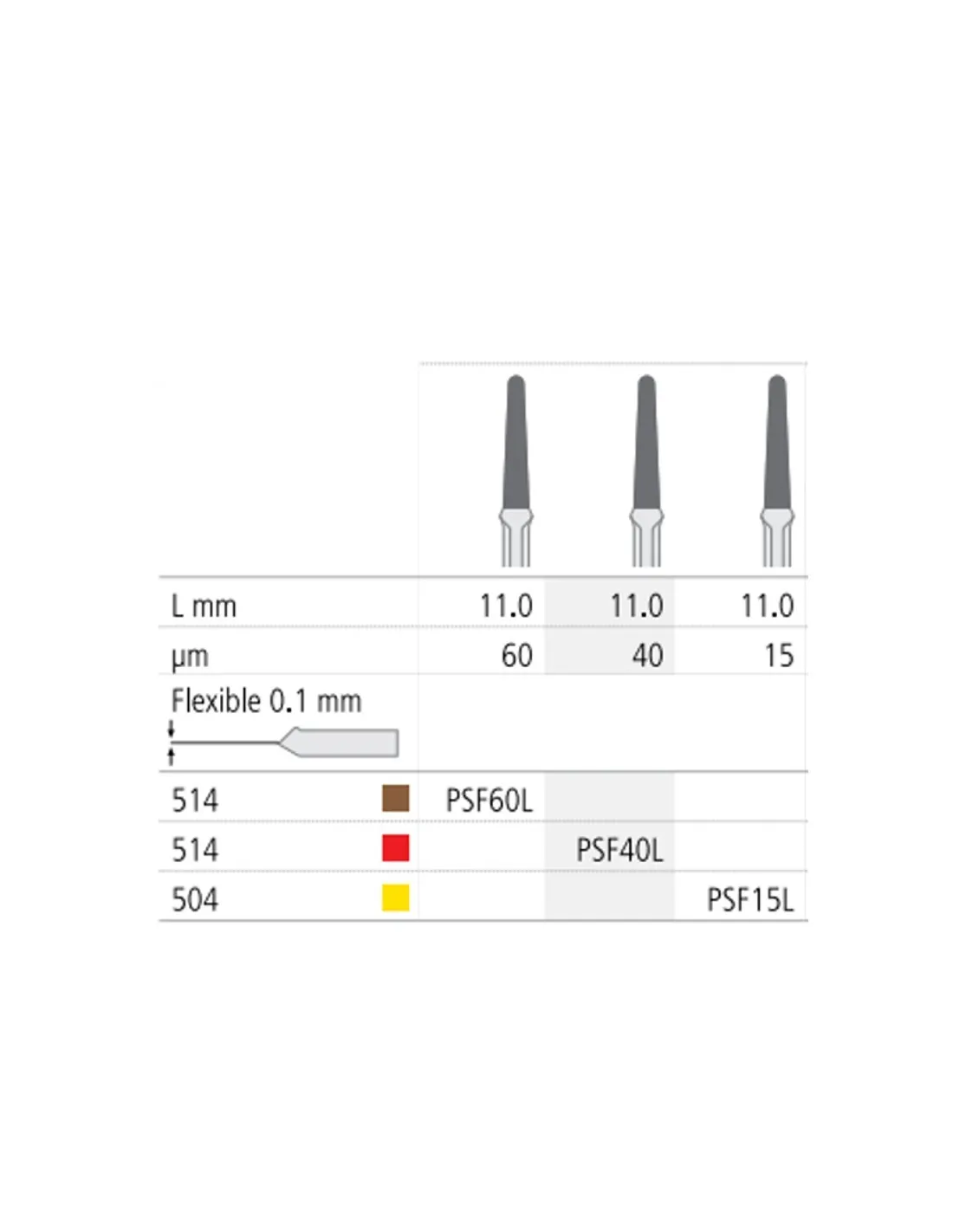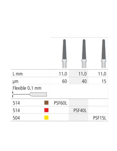 Estas limas diamantadas de una sola cara están disponibles en 3 diferentes granos, codificados por color: