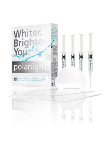 La diferencia de PolaNight con Pola Day, es que el primero es un blanqueamiento a base de peróxido de carbamida, que al ser usado por la noche permite aplicaciones más largas con una concentración menor obteniendo grandes resultados.