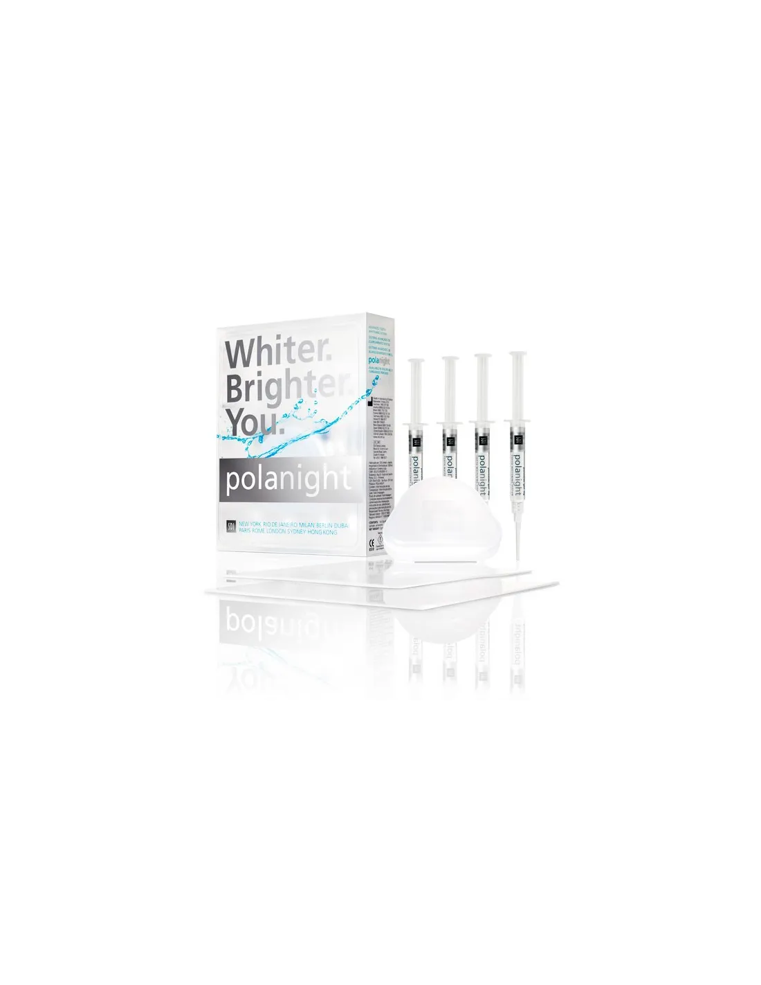 PolaNight Mini Kit es un kit de 4 jeringas del blanqueador, en 2 concentraciones a elegir de peróxido de carbamida: 10% y 16%.