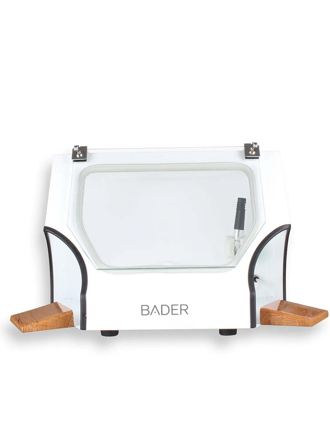 La cámara de trabajo de Bader Compact II es un espacio dedicado al pulido y acabado final de piezas como puentes, coronas o prótesis dentales y facilita el trabajo con equipos de abrasión como puede ser un micromotor.