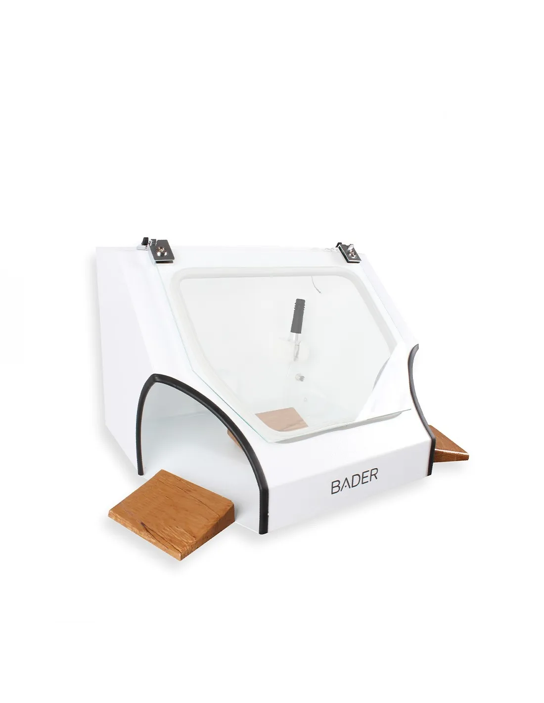 Compact II la cabina de repasado de Bader cuenta con un soplador de aire que permite la limpieza rápida de las superficies y las piezas dentales, eliminando cualquier residuo o partícula no deseados.