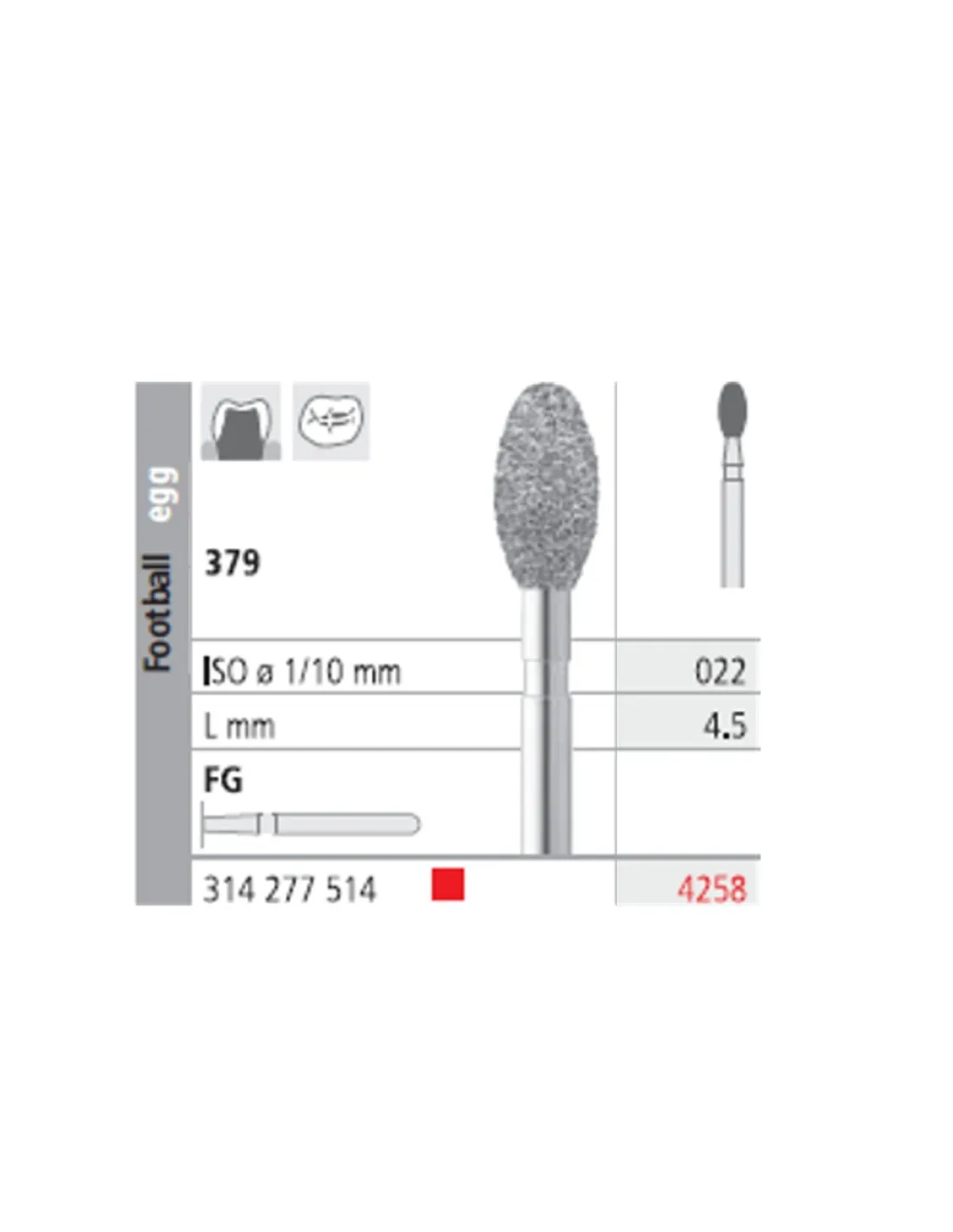 La fresa 379-022 presenta su parte activa con forma de un huevo / balón de rugby.