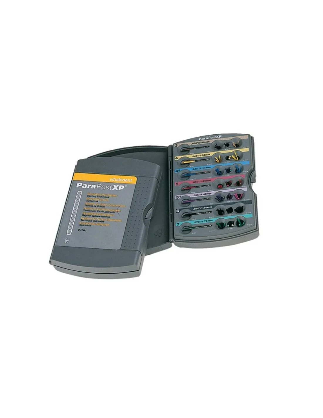 El kit intro ParaPost XP de Coltenè es un estuche con pernos y brocas para sistema de colado temporal.