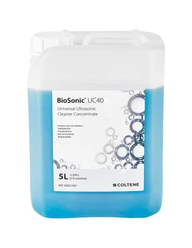Biosonic UC40 de Coltene es un potente desinfectante universal concentrado que proporciona una fórmula única y eficaz para la pre-limpieza y descontaminación de todo el instrumental de uso en clínica y laboratorio dental. Ideal para su uso en cuba de ultrasonidos.