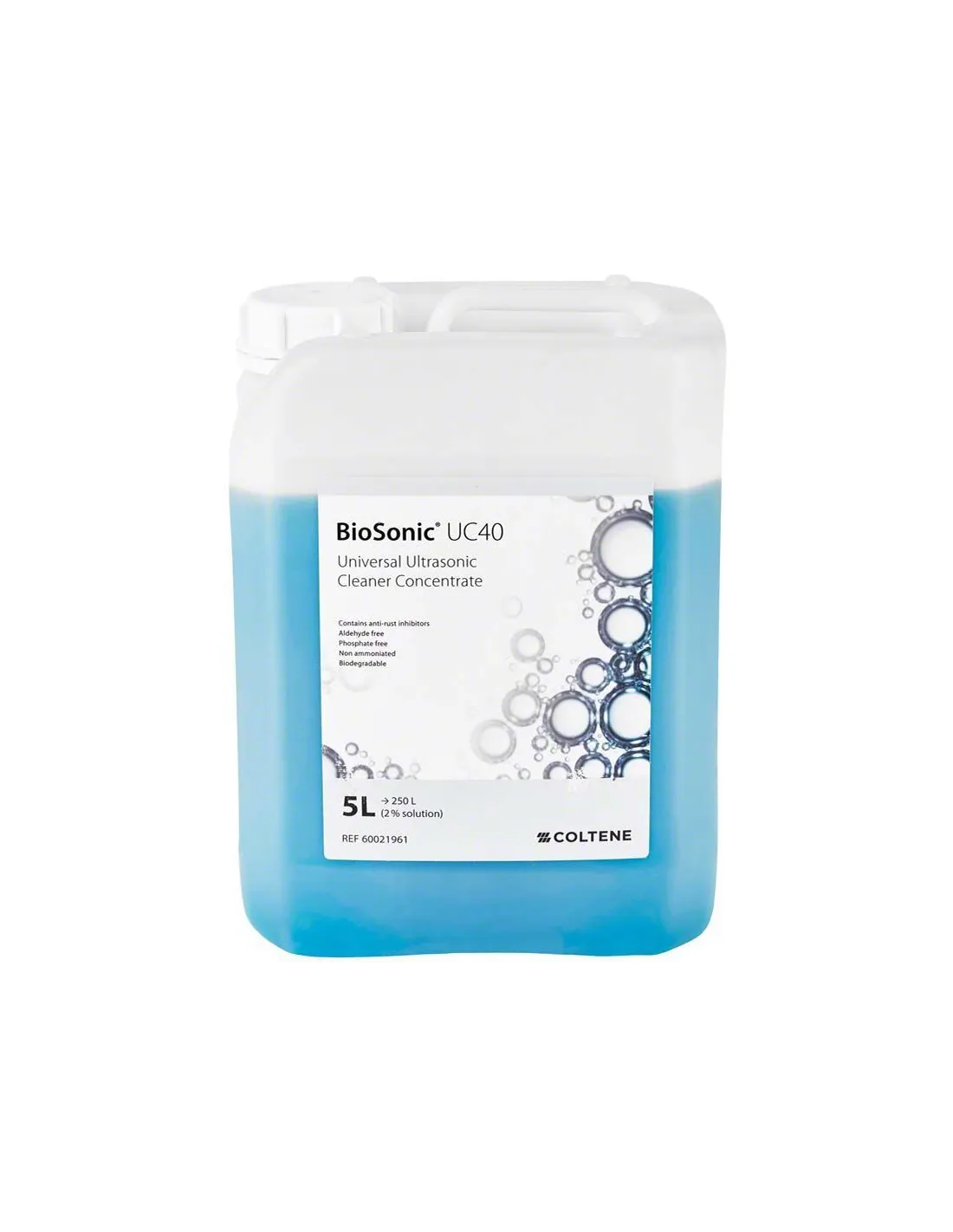 Dilución muy económica al 2%: 5L de Biosonic UC40 = 250L de solución lista para usar.