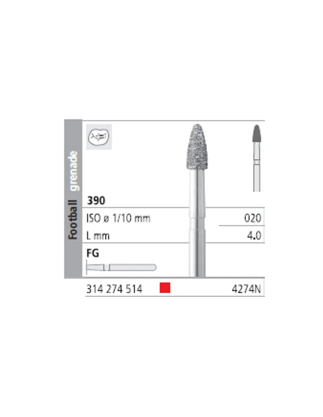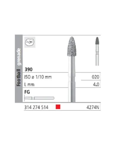 Longitud 4 mm y Ø 020. Grano diamante fino, banda roja.