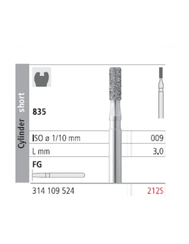 La fresa 835-009 presenta su parte activa con forma de cilindro, corto.