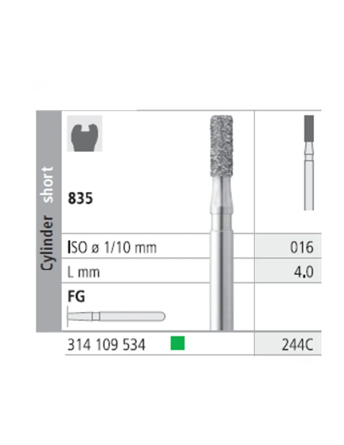 La fresa 835-016 presenta su parte activa con forma de cilindro, corto.