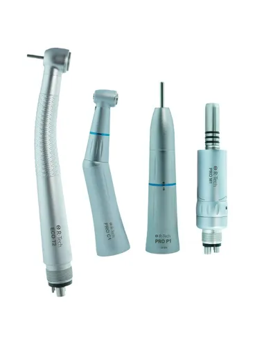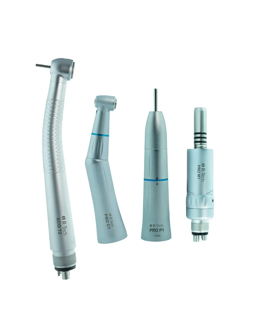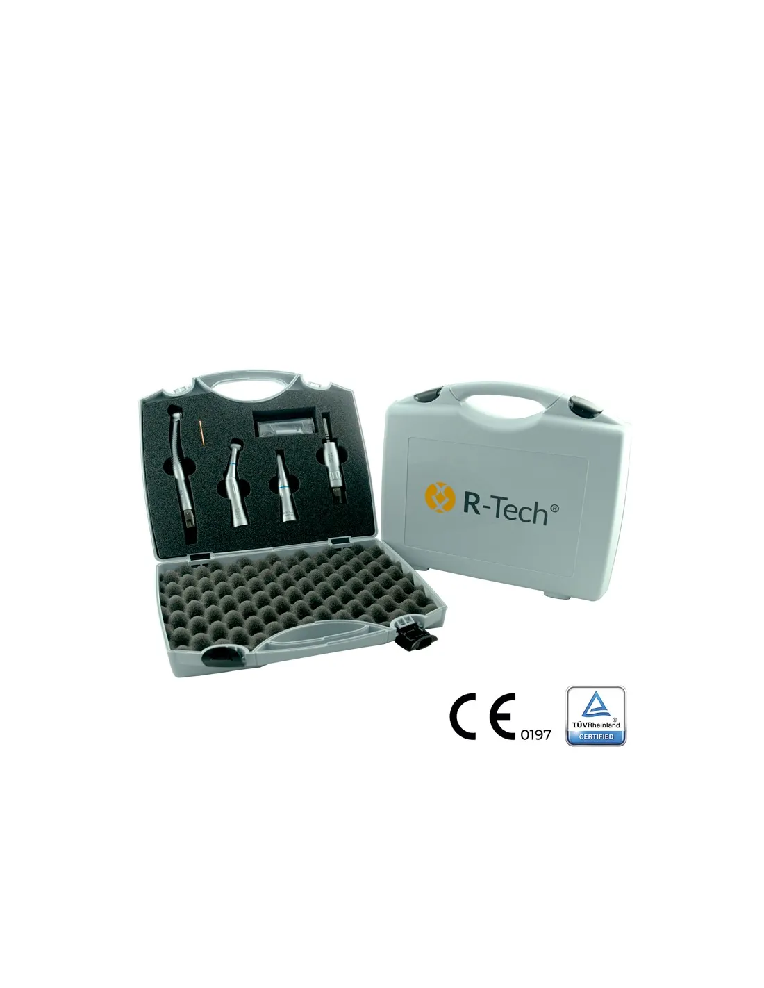 El kit de instrumental rotatorio de R-Tech Pro T Direct cuenta con: turbina, pieza de mano, contraángulo y micromotor:
