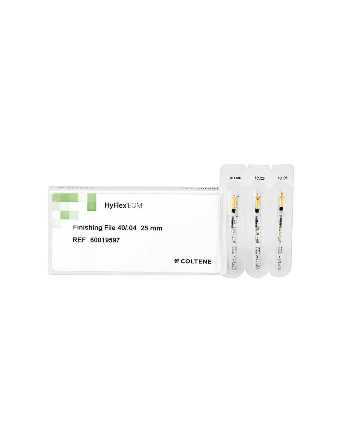 HyFlex EDM Niti limas de acabado de Coltène están disponibles en 3 tamaños/conicidades: 40/.04 - 50/.03 y 60/.02