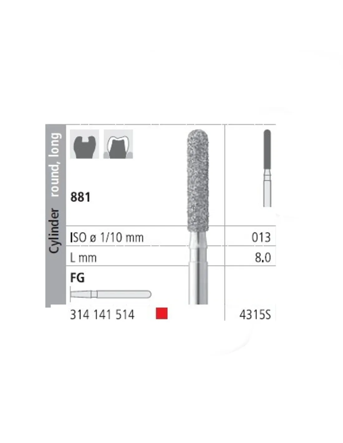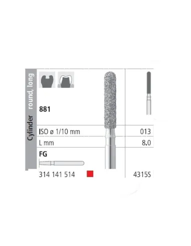 La fresa 881-013 presenta su parte activa con forma de cilindro redondo, largo.