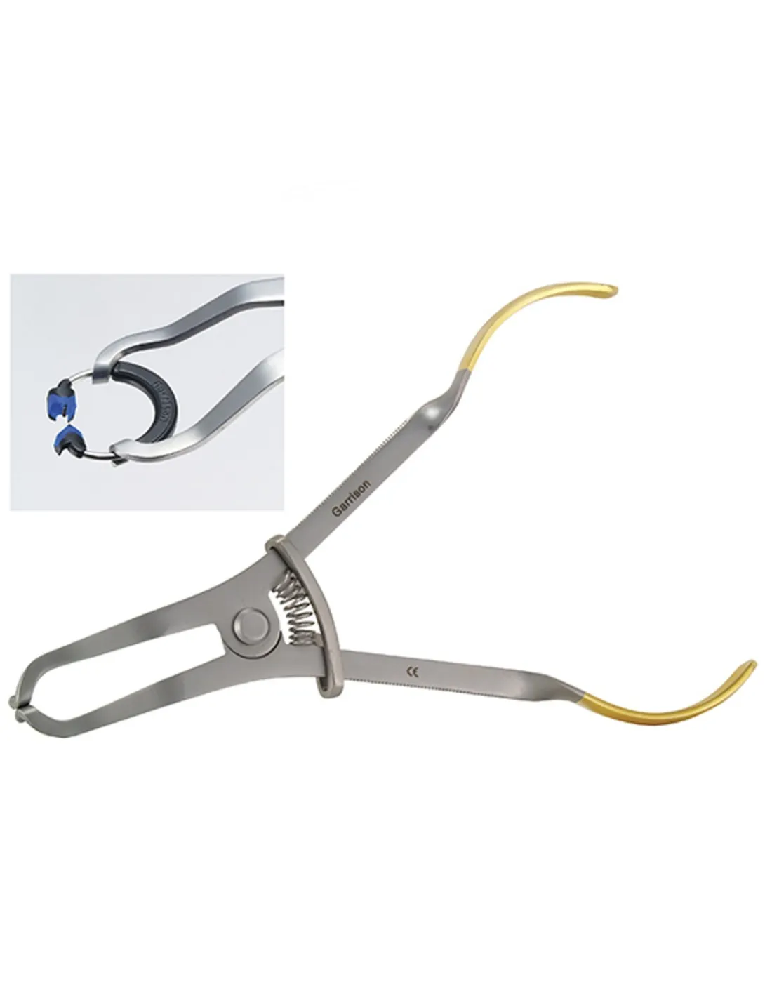 El kit también incluye un fórceps para la colocación de anillos diseñado de tal modo que se adapta a todos los anillos Garrison.