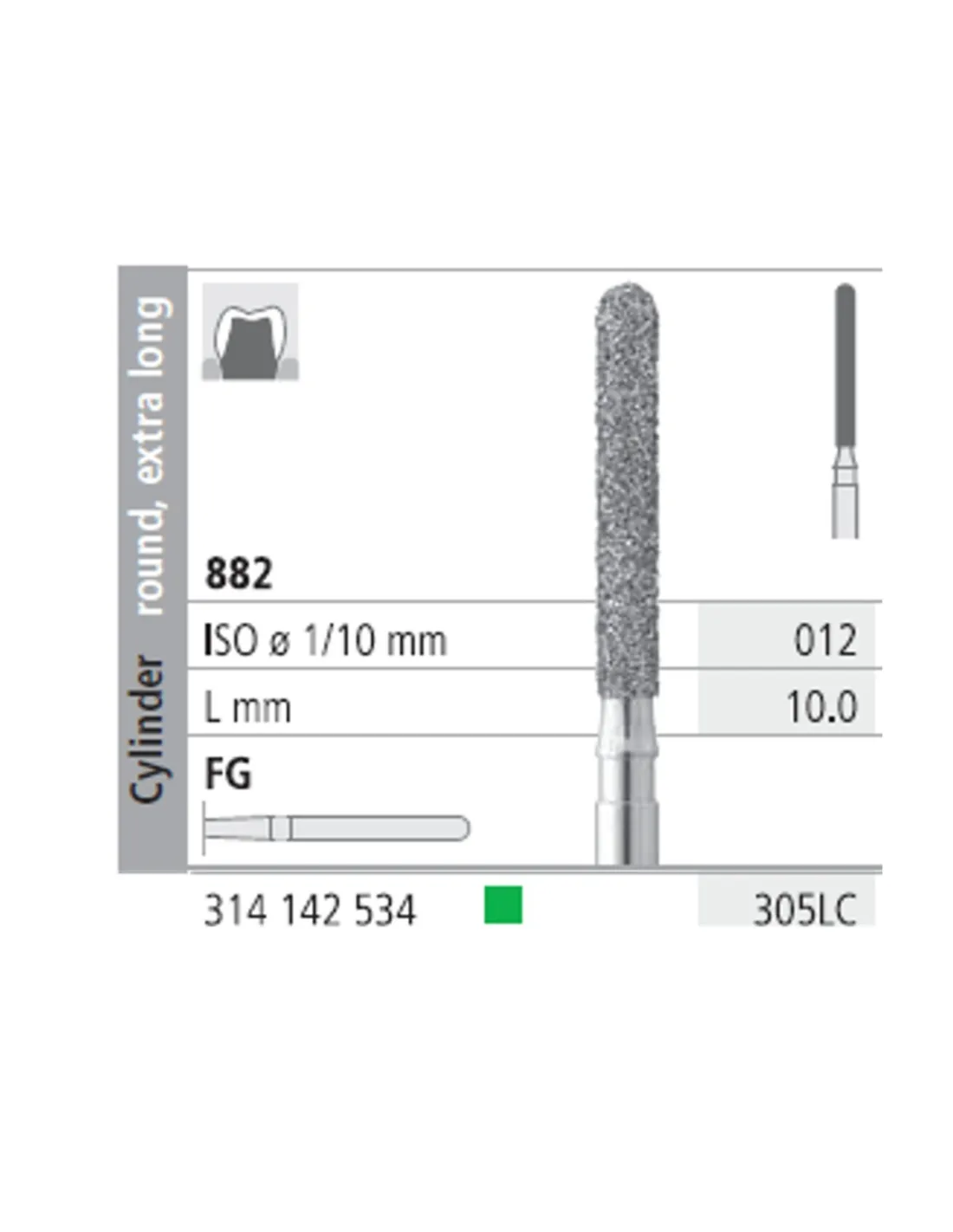 La fresa 882-012 presenta su parte activa con forma de cilindro redondo, extra largo.
