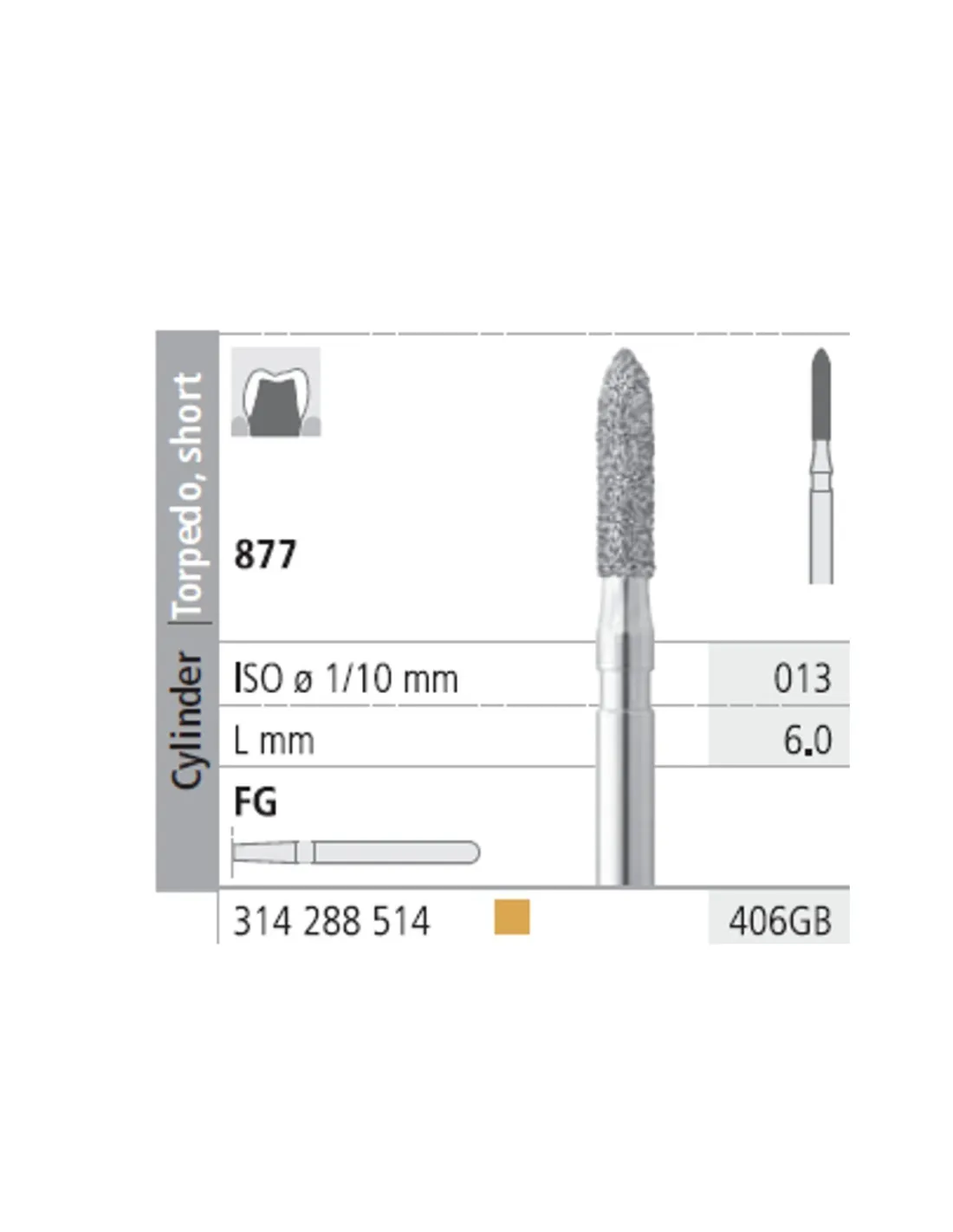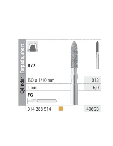 La fresa 877-013 presenta su parte activa con forma de cilindro, torpedo corto.