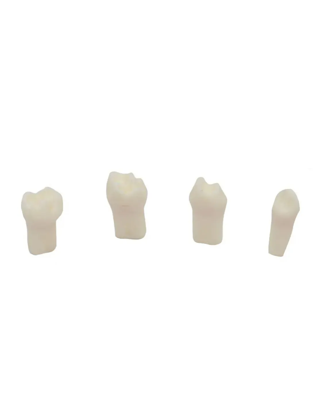 Fabricado en plástico duro similar a tejido, el diente incorpora cera en la cavidad pulpar para ejercicios de pulpotomía, cámara de pulpa hueca diseñada anatómicamente correcta.